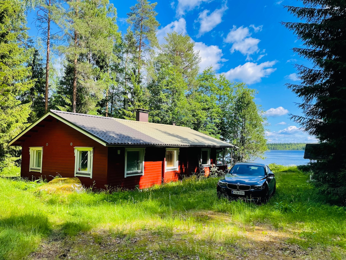 A cozy cottage between pines and the lake just in 2 steps from Saimaa. It is quite small inside (30 square meters) with a big open terrace and a green lawn in front of it. There are a Loft bed for 2 people with a view, a small kitchen, fireplace, sauna on woods inside the cabin. It is great to start your day from early swimming and yoga/breakfast at the terrace listening to birds songs and finish your day with a glass of wine taking pictures of a stunning sunset.