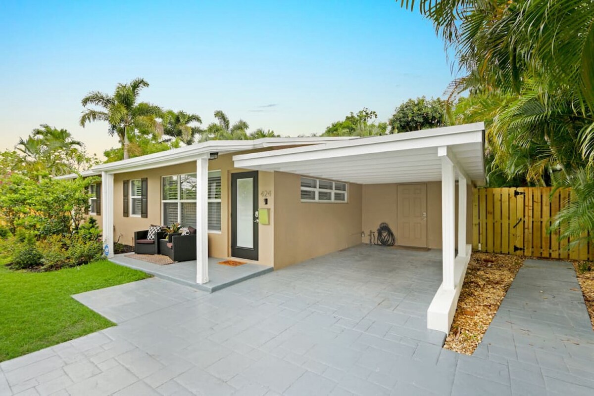 Welcome to Sunhouse, your private pool oasis in the perfect location: Just 1.3 miles from the beach and the Pompano Beach Fishing Village! That's a 5 min car ride! This house is the perfect Florida escape with everything you need plus the luxury of your own (BIG) heated pool! Relax in the backyard with comfy loungers, adirondack chairs, BBQ, and pool toys. Want to explore? Hop on our bikes for a quick 10-min ride to one of Florida's best beaches, where you'll find the best restaurants & shops!