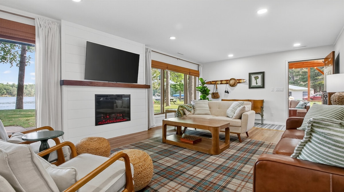 Frente al lago: aire acondicionado, terrazas, muelle, fogata, wifi y más