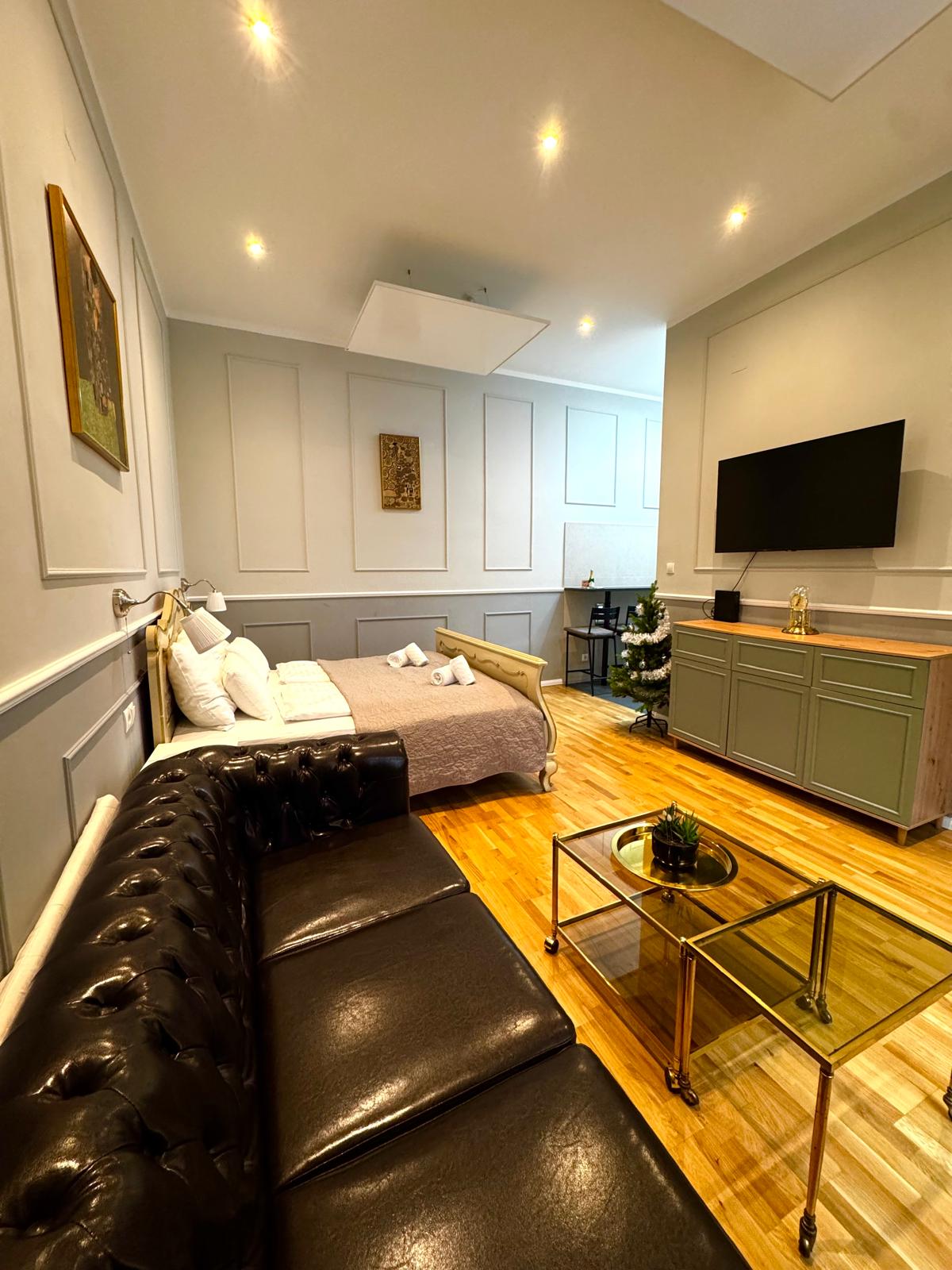 Elegante apartamento con hermosos muebles, totalmente equipado. Cocina: nevera, estufa, microondas, lavavajillas, caldera de agua, platos y cubiertos Habitación 1: cama doble, percha de ropa, tabla de planchar, plancha, cómoda Habitación 2: sofá cama, mesa comedor, Smart-TV y PlayStation Baño: bañera, lavadora Baño con lavabo El edificio de apartamentos es nuevo y tranquilo, ya que está fuera de la carretera principal. Se puede llegar al apartamento a través de dos líneas de autobús (3 minutos a pie) y una línea de metro (10 minutos a pie).