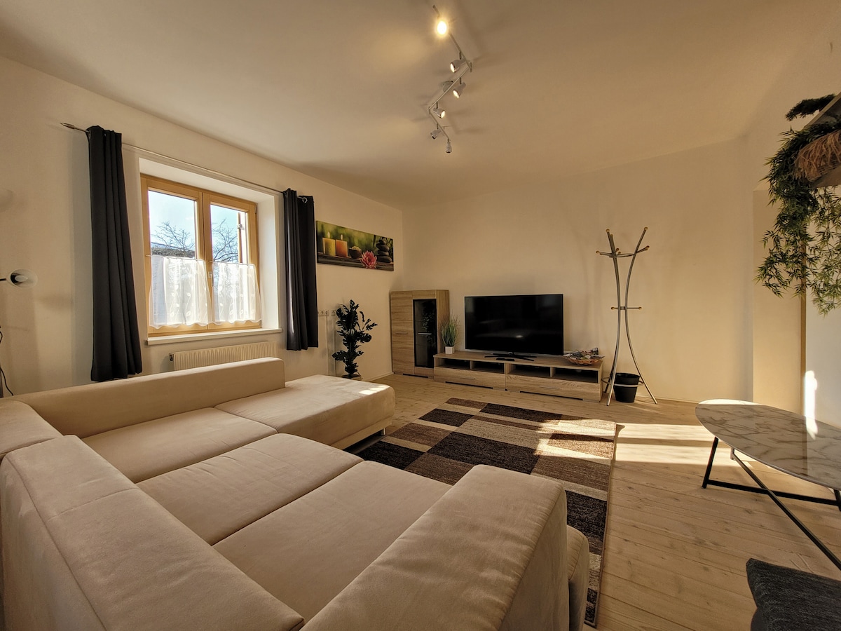 New!! Relax in this special and quiet family-friendly accommodation. Ideal for couples, families or single travellers. Close to hiking and skiing areas (hiking areas Karwendel on the doorstep - ski areas e.g. Zillertal and Achensee etc. nearby) New, high-quality facility. Sauna, fitness, terrace, garden. Own entrance, free car parking space, 2x TV, Netflix, Prime, free WiFi. Enjoy the beautiful panorama and the proximity to top spots in Tyrol. Long term renters welcome!