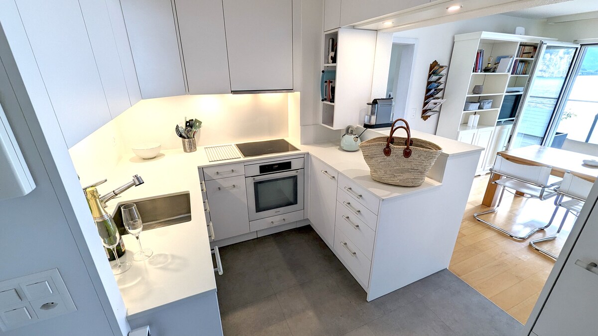 Departamento exclusivo directamente en el lago con vistas al lago y a las montañas de Pradiesian y acceso privado al lago Lucerna y al embarcadero. - Dormitorio principal con cama doble grande y baño privado - 2do dormitorio con 2 camas y segundo baño - Cocina de lujo - Jacuzzi con impresionantes vistas de abril a octubre (solo en verano) - Ubicación céntrica: Lucerna en 35 minutos, Zúrich en 55 minutos. Lugano en 1,5 horas Andermatt, Titlis en 30 min - Punto de acceso para windsurf - Estación de carga eléctrica bajo petición.