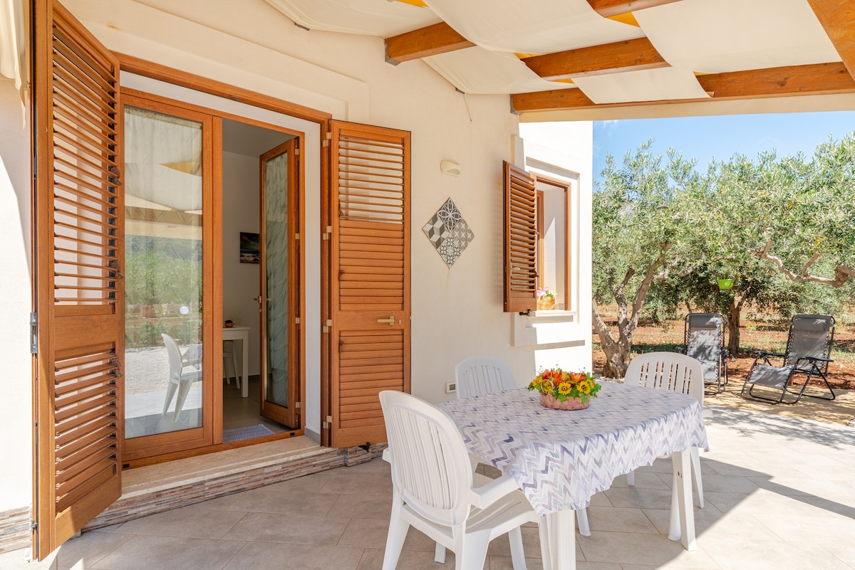 Apartamento de dos habitaciones INMERSO EN LA NATURALEZA, con vistas a la inmensa extensión de olivares, las montañas y el mar a lo lejos. Puntos fuertes: amplio jardín exterior donde relajarse, comer disfrutando de fantásticas puestas de sol, barbacoa, APARCAMIENTO GRATUITO, ducha interior y exterior. Se encuentra en Castelluzzo, en el centro entre dos espléndidas reservas: la Reserva de Monte Cofano y la Reserva de Zingaro. A pocos kilómetros se encuentran playas impresionantes, como la de San Vito lo Capo, la cala del Buey Marino y muchas más.