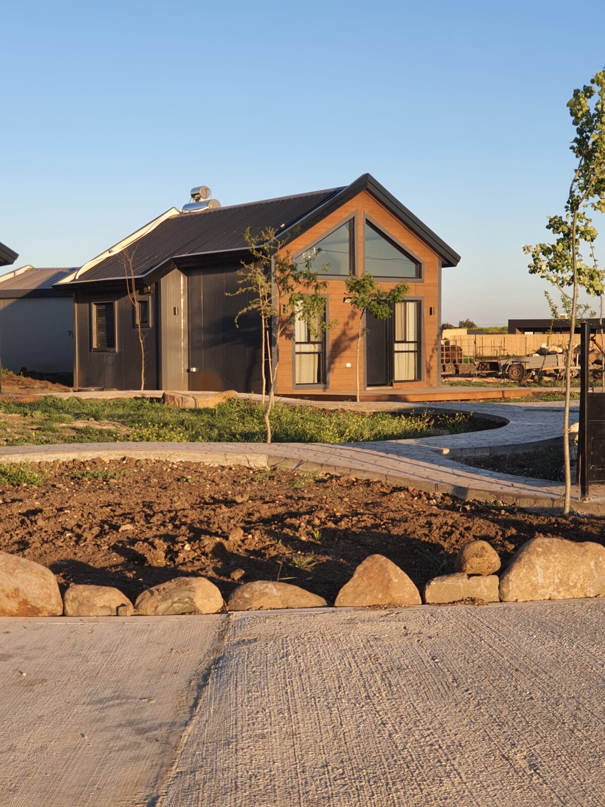 A unique rural-industrial style that blends perfectly into the agricultural moshav. This special complex offers 3 units with lots of privacy. Inside, privacy is guaranteed when there are 3 separate spaces for each cabin: a living room, a double room and a gallery, in addition to the comfortable and comfortable outdoor space. Each unit has a private pool - which contributes quite a bit to the blessed feeling of the "alone".
