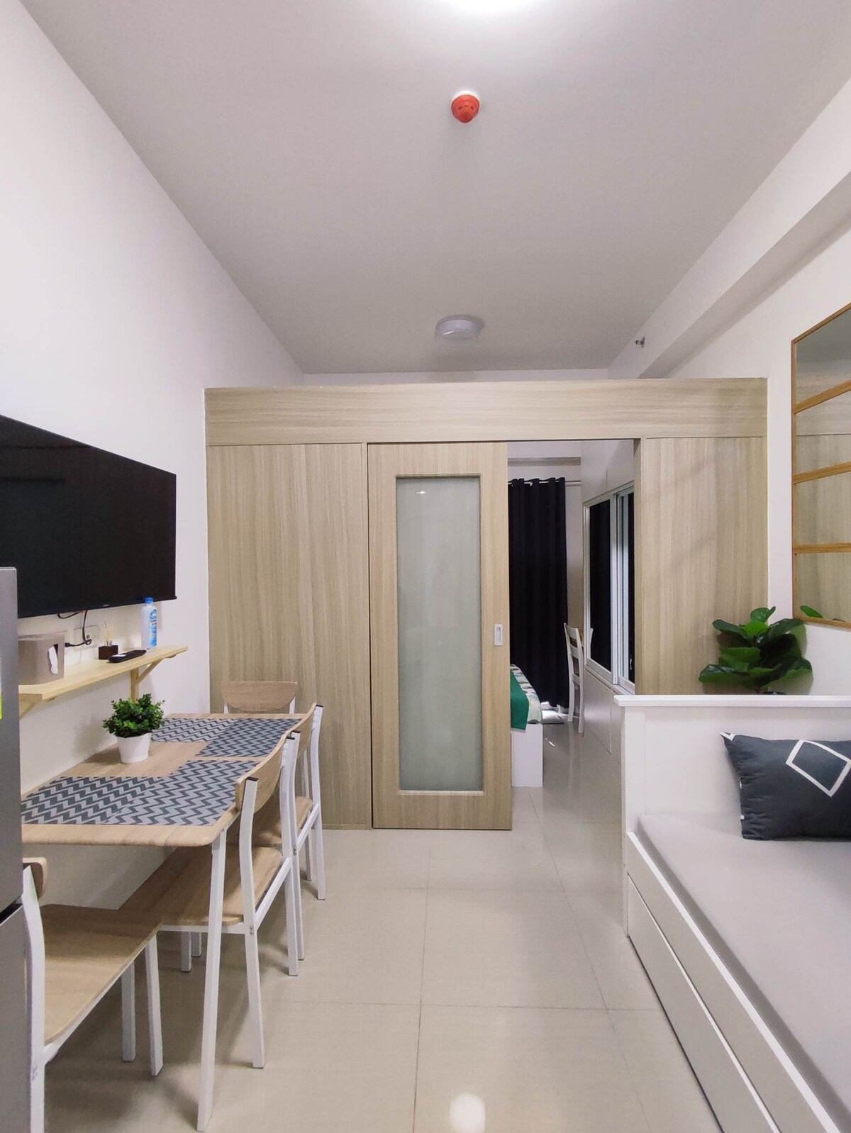 Disfrutá de una experiencia con estilo en este alojamiento céntrico. * A 15 minutos a pie de MOA y a 10 minutos a pie de MOA Arena. * A 15 minutos en auto del aeropuerto nacional e internacional de Manila por la autopista. *Tiene capacidad para 3 personas con una lujosa cama tamaño queen y un sofá cama. * Dormitorio con partición de vidrio de diseño elegante para privacidad y estilo. *TV inteligente, wifi de alta velocidad, secador de pelo y escritorio. *de cortesía: artículos de tocador, café * Cocina pequeña con todos los elementos esenciales, como microondas, heladera, etc.