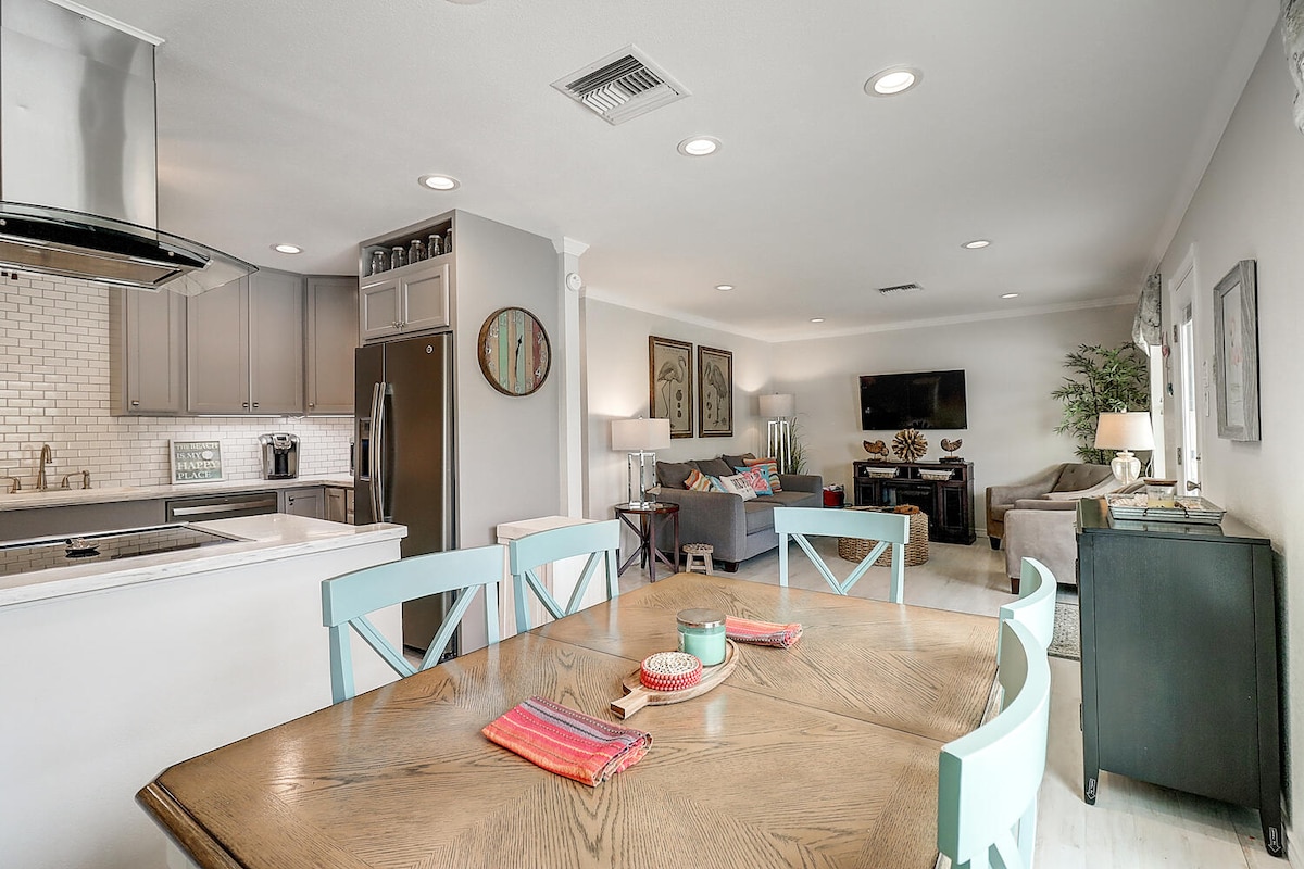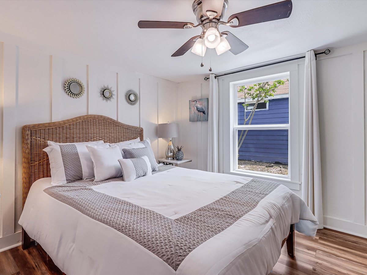 Watch the sun rise over the bay and the sunsets over the lakes - enjoying them both with the breezes from the gulf washing over you, and from inside screened in porches. Venture out to a 5 minute walk to the beach or with the binoculars for birding (400 species). This 2 bedroom 2 bath WELL EQUIPPED and recently updated house is where you'll make memories and will recharge. Featuring a large master with en-suite bath, a large open kitchen and comfy adjacent living room. Bring your wine and relax!