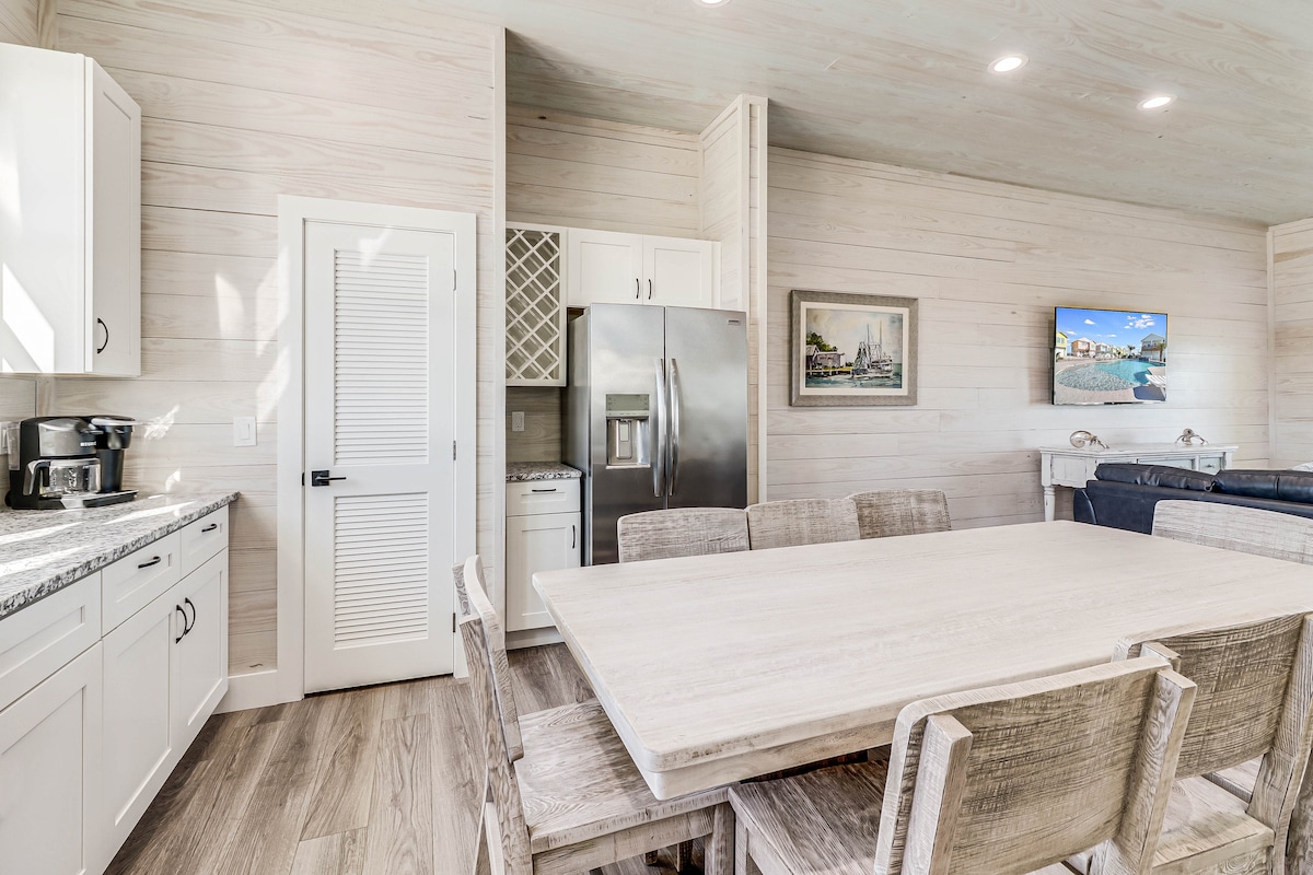 Water Front Oasis with amazing views of Lavaca Bay. Pristine ground level home, with high ceilings, open floor plan, comfortable beds, fiber WiFi and fully equipped kitchen. Walking distance to the public beach, boat ramp and "The Crabbing Bridge" one of our area's favorite fishing spot. Your group will love taking in views of Sunrises, Sunsets, coastal wildlife and passing ships from the screened porch. Come getaway and relax at our Mag Beach Refuge.