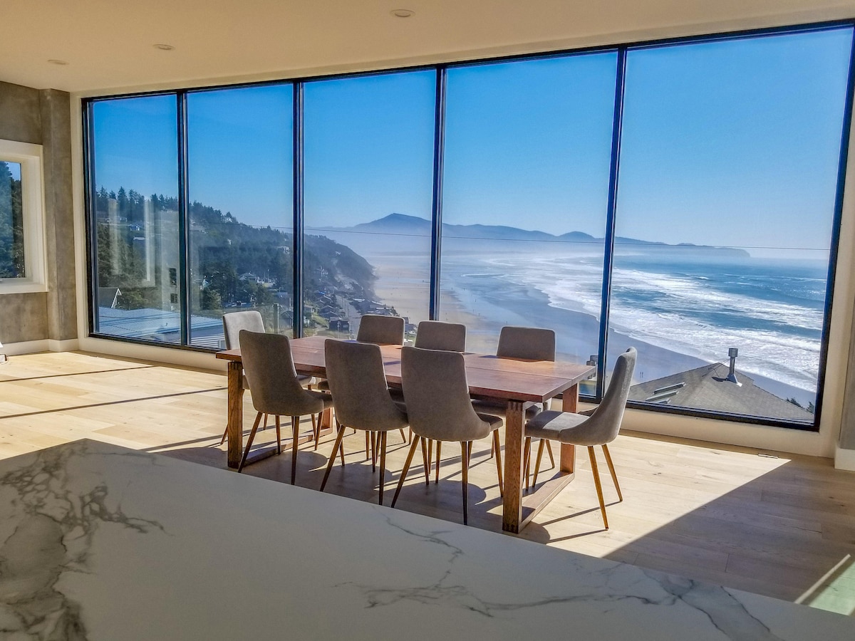 Impresionantes vistas al mar enclavadas en la remota Falcon Cove, un barrio protegido dentro del parque estatal Oswald West. Esta nueva y galardonada casa moderna personalizada, inspirada en el famoso arquitecto noroeste Tom Kundig, aprovecha las impresionantes vistas desde cada ventana orientada al oeste. La cocina gourmet, con cocina de gas Miele, horno, microondas y nevera SubZero, te permite cocinar ese plato acogedor que tu corazón desea, o hacerlo sencillo y vivir la vida de la charcutería, ¡porque son tus VACACIONES!