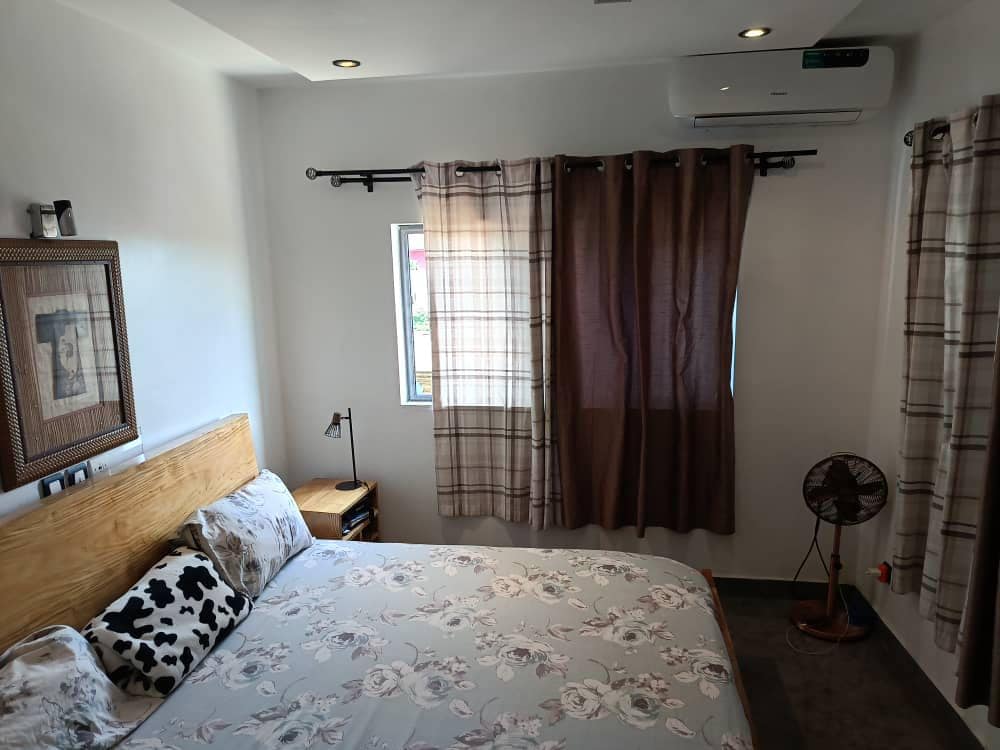 Diviértete con toda la familia en este alojamiento elegante. alojamiento espacioso situado en un edificio tranquilo y seguro con servicio de vigilancia las 24 horas equipado con un grupo electrógeno en caso de corte de energía, situado cerca de todas las comodidades y accesible al centro de la ciudad y está en el segundo piso Nota: la electricidad es a cargo del cliente