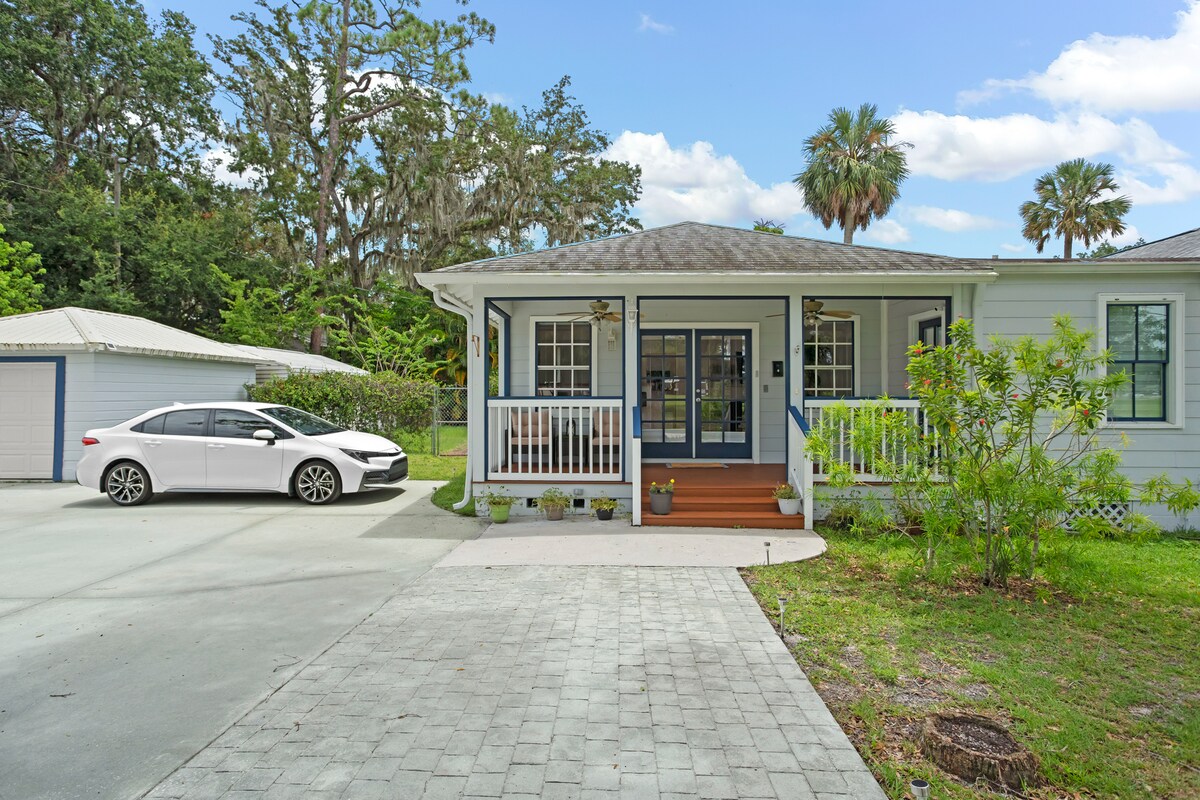 Una sensación de «vieja Florida» se combina con una cocina privada, moderna y completa; muebles cómodos; y amplias terrazas con vistas a robles vivos maduros y exuberantes jardines en los amplios terrenos y el parque vecino; todo en un barrio antiguo, amigable, seguro y tranquilo. Camina, pedalea o conduce 16 manzanas hasta el centro de Sanford, pasando por residencias históricas y renovadas. Disfruta de hacer turismo a lo largo del lago Monroe, de compras eclécticas y de cenar y relajarte en los numerosos restaurantes, pubs y microcervecerías.