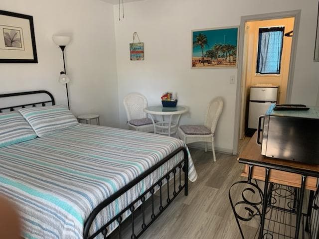We have 5 units on this property, 2 offer a separate area for cooking and a living/sleeping area that could be considered a studio, and one block to the beach. We are on property daily and a phone call away. I like to be able to make your stay one that will want you to return. Our units are located in a single story building, close to public transportation. This is Florida, be casual and don't pack too much we have laundry facilities, 2 minute walk to the Beach