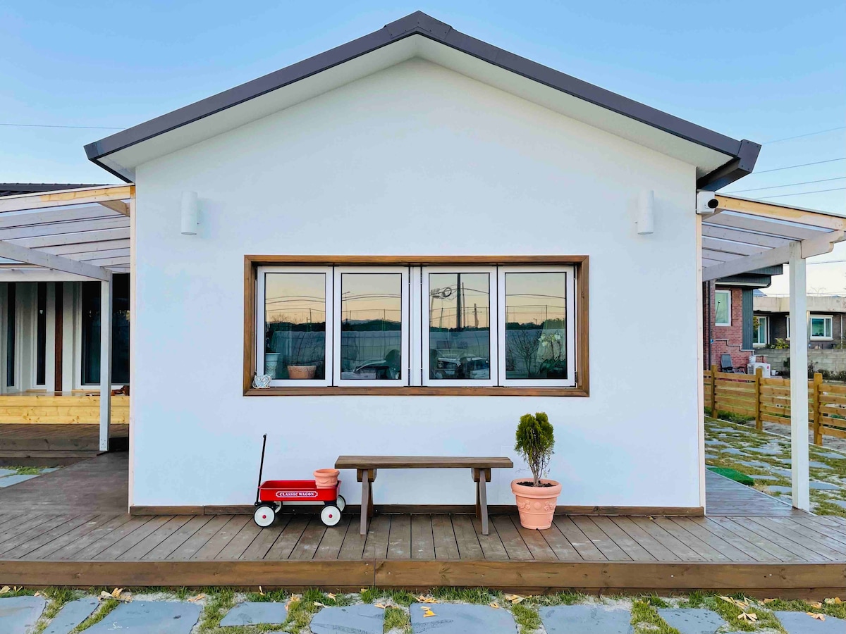 Es un alojamiento privado no presencial para un solo equipo, cómodo 25 pyeong en un gran terreno de 200 pyeong en auto desde el alojamiento. Es una entrada de pueblo junto a una carretera ancha, pero está a unos 50 metros de la casa privada, por lo que es un alojamiento privado no cara a cara. Los dos dormitorios tienen una cama tamaño queen y dos tamaños súper individuales, y puedes disfrutar de las películas de Netflix en un televisor grande de 8k y 85 pulgadas. La distancia desde la playa también está a 3 minutos en auto de Surf Beach. Después de estacionar, hay 20 escaleras bajas y bonitas en el jardín. Si no te sientes a gusto, ponte en contacto con él durante la reservación.