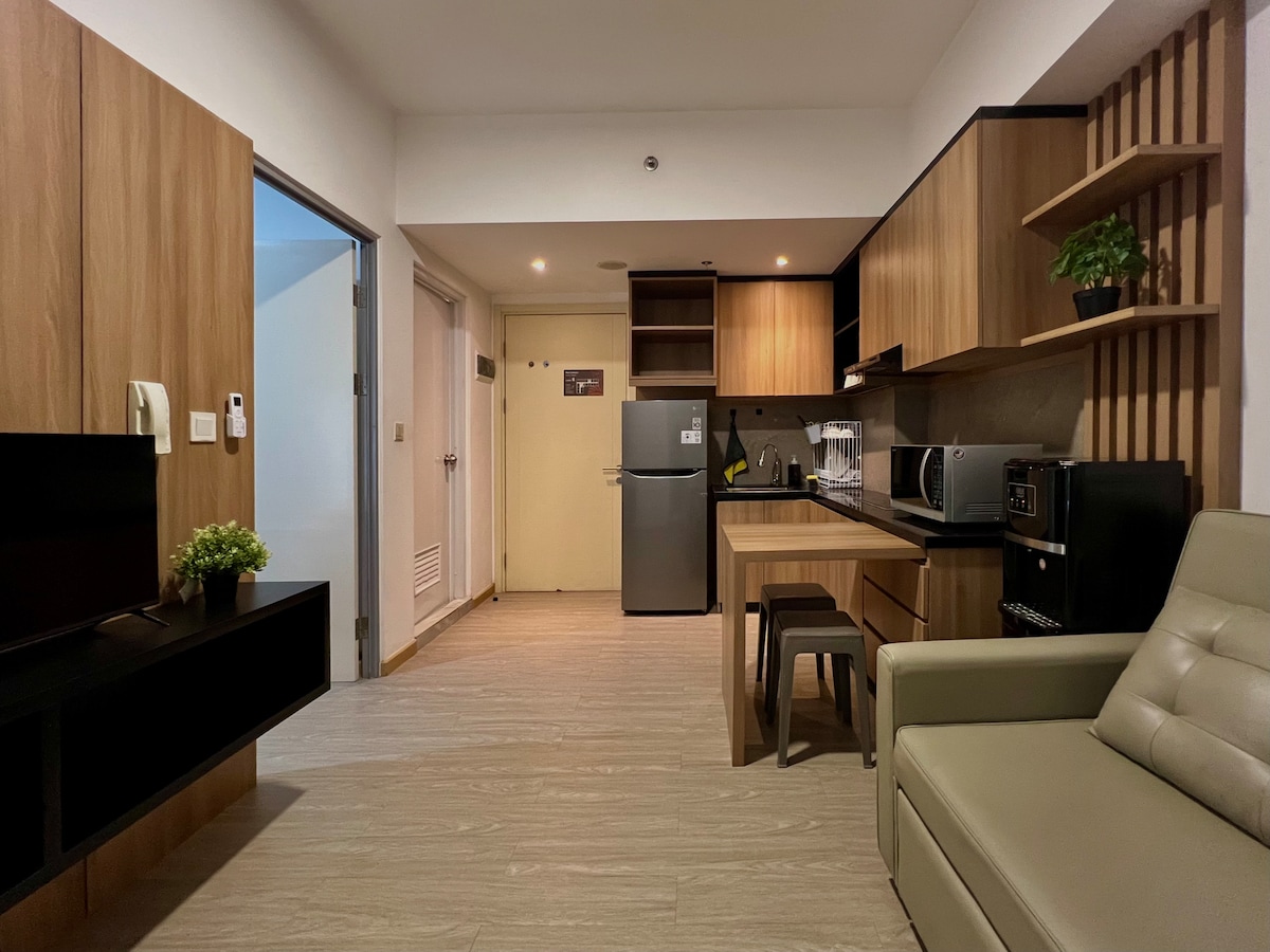 Alojate con estilo en nuestro loft de lujo en Brooklyn Apartments, Alam Sutera. Disfrutá de techos altos, grandes ventanales y un dormitorio acogedor. A solo unos pasos de Living World, Mall @ Alam Sutera, IKEA y Flavor Bliss para cenar y comprar. Perfecto para viajes de negocios o de placer, con cafés, gimnasios y entretenimiento cerca, ofrece la combinación ideal de comodidad, conveniencia y elegancia moderna.