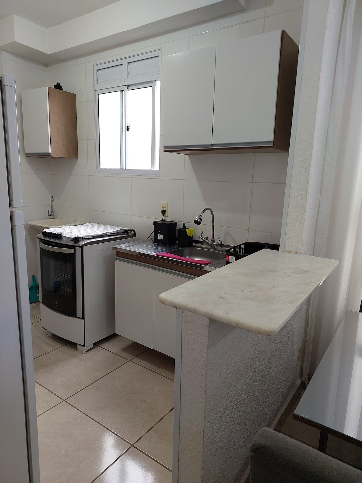 Apartamento tipo estudio en un edificio de 18 pisos, totalmente amueblado, en el corazón de Piracicaba, con 1 plaza de aparcamiento cubierta, gas canalizado, filtro de agua, electrodomésticos, intercomunicador, conserje las 24 horas, Wi-Fi, Smart TV de 50 pulgadas, cerradura electrónica, seguridad y discreción. Cerca de mercados, bancos, panaderías, restaurantes, iglesias y tiendas. Tiene capacidad para dos huéspedes con una cama doble y un colchón individual adicional para un niño. Se admiten mascotas pequeñas.