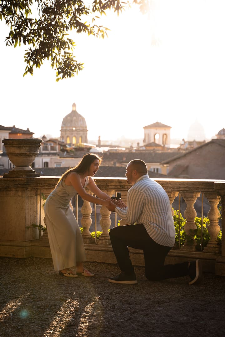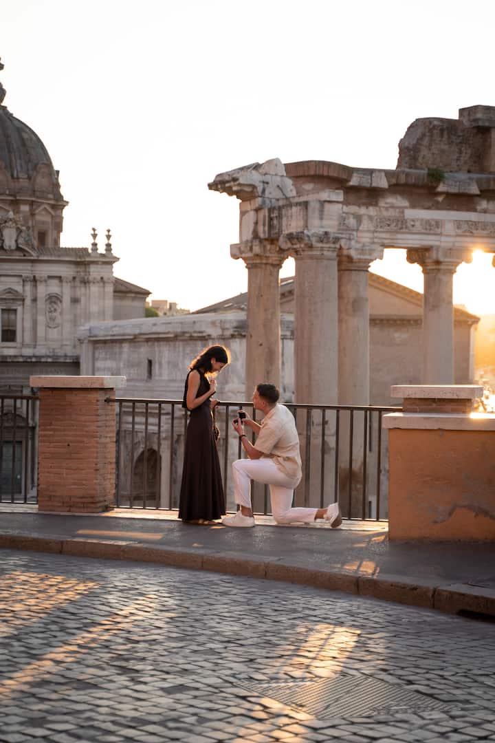 Una sesión de fotos de 30 minutos para capturar tu propuesta secreta en Roma. Voy a fotografiar de forma discreta el momento exacto y entregar 25 imágenes editadas profesionalmente. Rápido, sencillo e inolvidable.