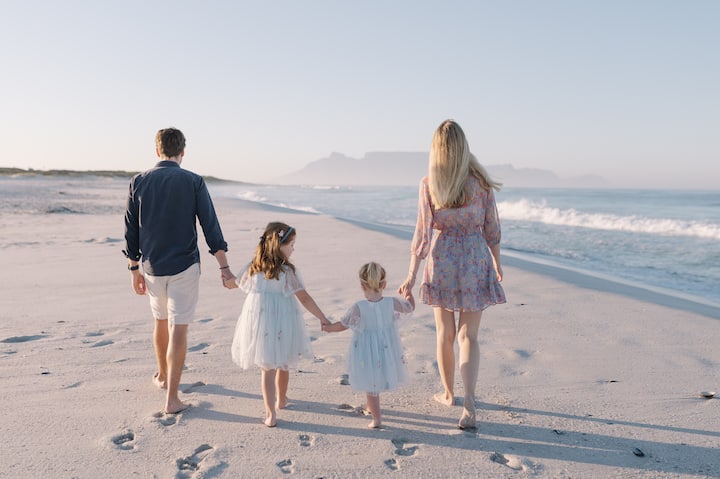 Sesión de fotos familiar relajada en Holbaai Beach con la emblemática montaña de la Mesa como telón de fondo. Incluye 50 imágenes editadas y una sesión de una hora. Te guiaré para que las fotos de tu familia sean lo más naturales y felices posible.