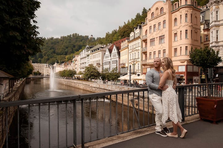 Recibirás 10 fotos editadas tras esta breve sesión, que comienza cerca del parque Colonnade y pasa por el casco antiguo de Karlovy Vary.