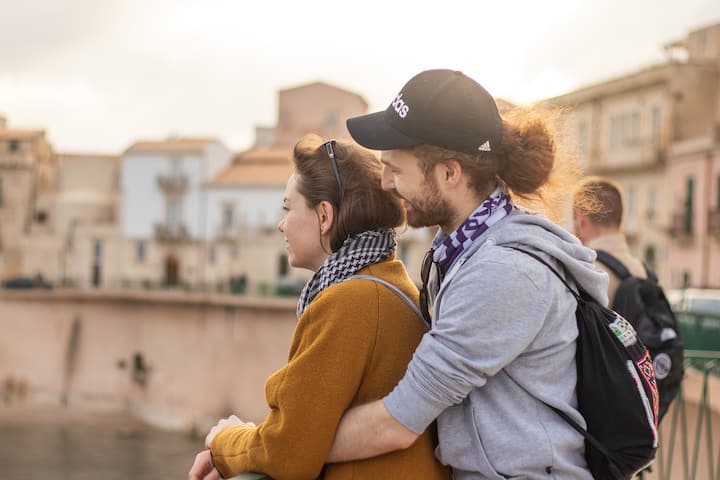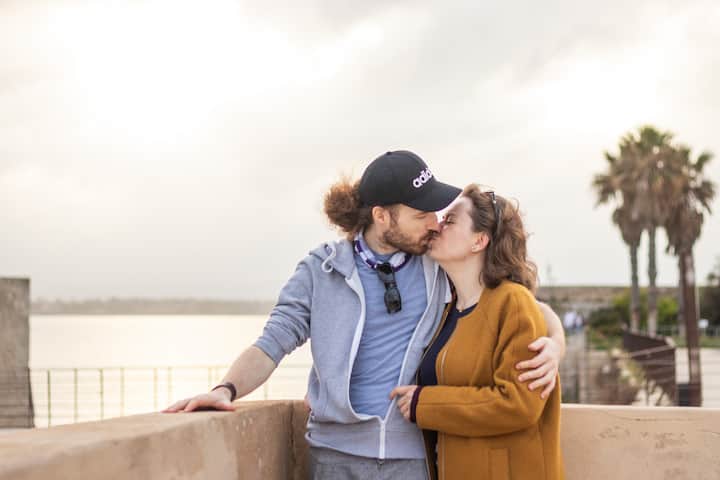 Sesión de fotos al atardecer con 80, 120 o 180 fotos en las calles de Ortigia.