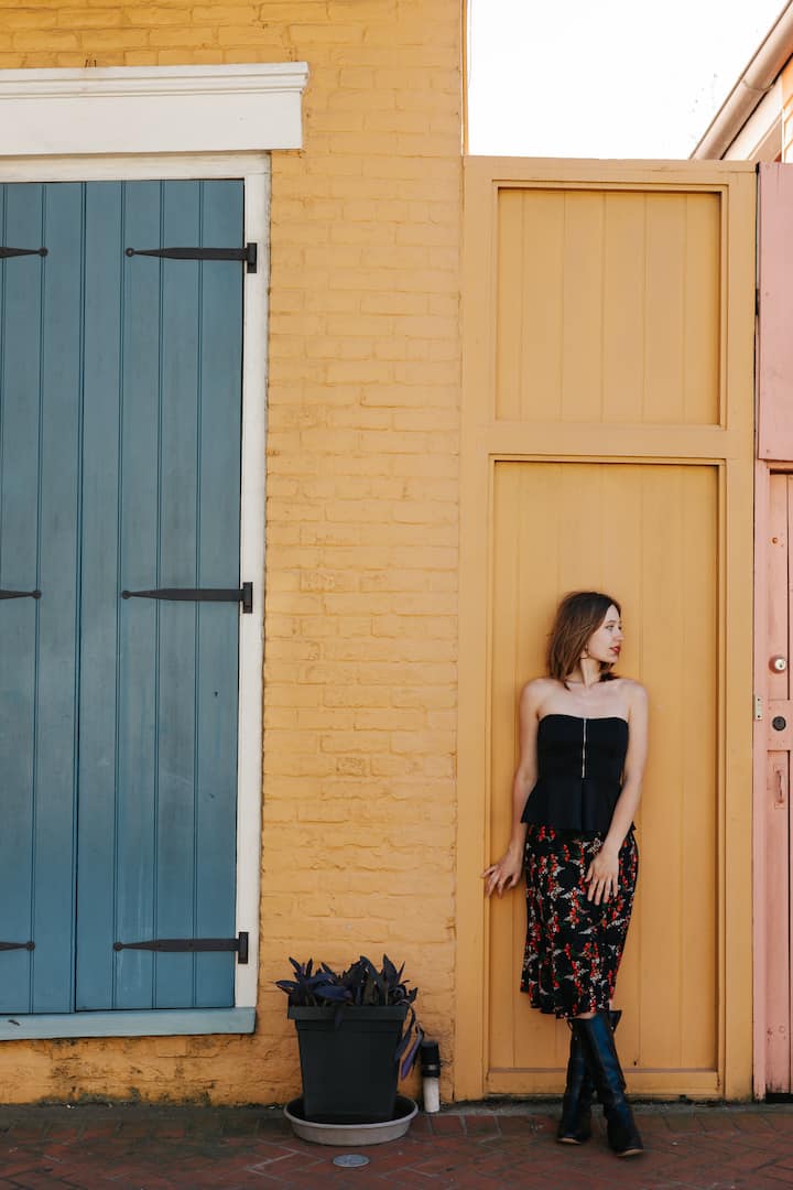 Posa en lugares emblemáticos del distrito, como Royal Royal Street, Bourbon Street, Orleans Street y Perseveration Hall.