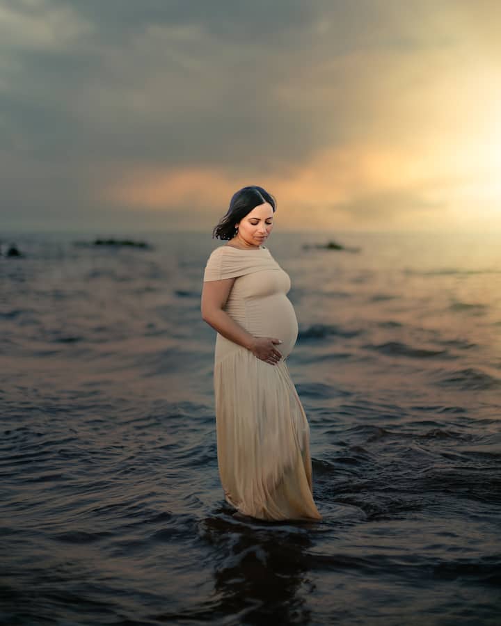 Inmortaliza la magia de tu babymoon al atardecer. Al finalizar la sesión, deberás abonar 399 $ adicionales para recibir la galería digital.