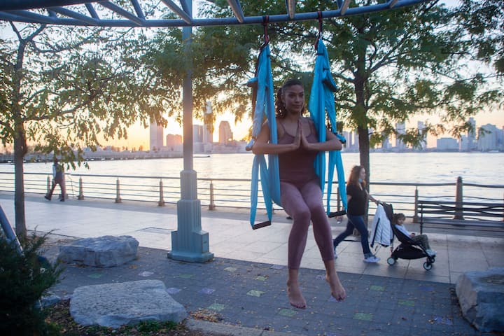 Sesión de yoga en trapecio al aire libre para principiantes: equilibrio y estabilidad