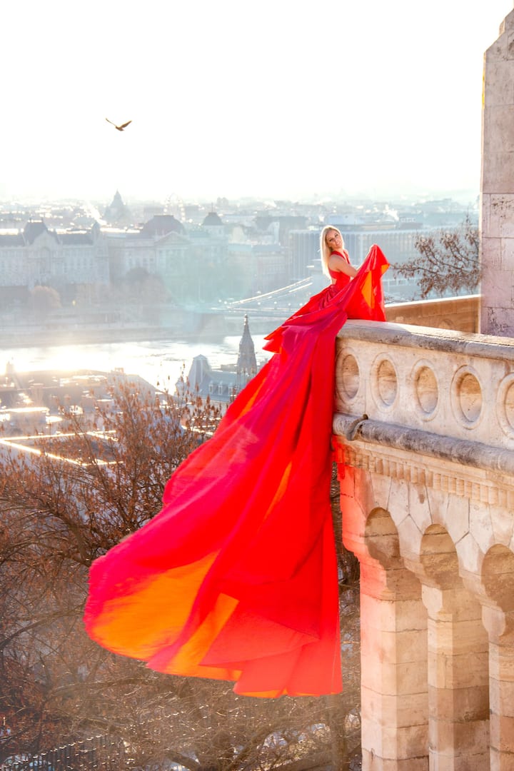 Sesión de fotos épica con vestido volador y fotógrafo profesional local