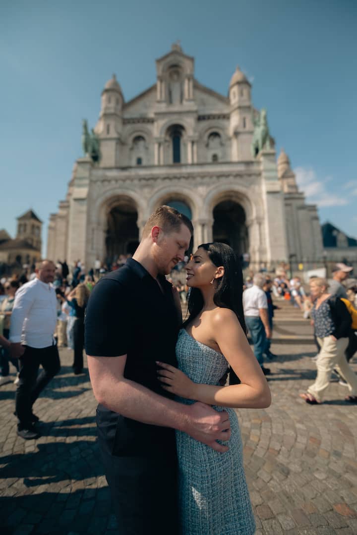 Esta sesión de retratos es ideal para parejas en Sacré-Cœur, con un entorno emblemático, momentos auténticos y ediciones pictóricas.