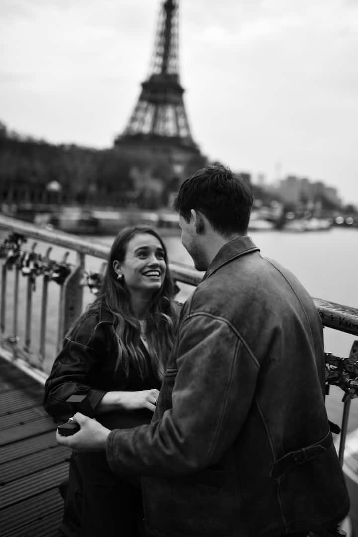 Hay algunos segundos en la vida cuando el tiempo se detiene y la ciudad escucha. Tu pregunta, la respiración contenida, la respuesta, sí o lágrimas o ambas, se despliega contra la luz de París. Esta sesión es una coreografía tranquila de distancia y cercanía: primero invisible, luego a tu lado, dando forma a los momentos posteriores en imágenes a las que puedes volver cuando las palabras no son suficientes.