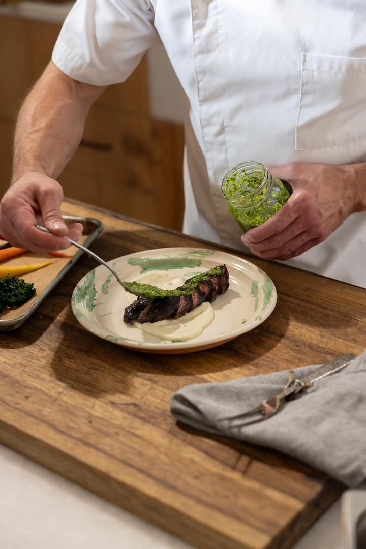 Disfrutá de una noche elegante y sin preocupaciones con una cena italiana preparada con esmero. Este menú fijo está diseñado por el chef Joey y terminado en tu casa por un sous chef de confianza. Esta comida puede ser una cena íntima, una celebración con amigos y familiares, o simplemente una cena. Una ensalada de temporada para empezar, pasta fresca con salsa clásica de tomate y albahaca, salmón o bistec de falda a elección con guarniciones de temporada y postre seleccionado por el chef.