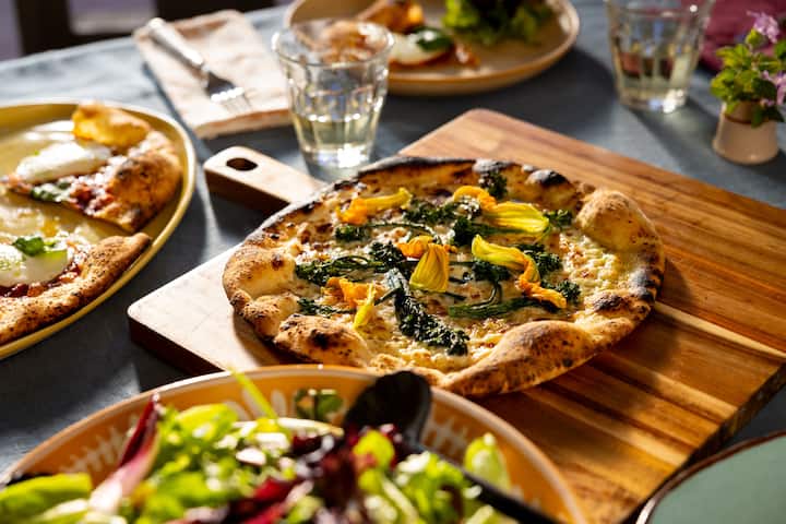 All Fired Up Pizza trae los sabores de Italia a tu hogar lejos de casa con pizzas de masa fina hechas a mano y horneadas en un horno portátil de leña. Servido en estilo buffet con una selección de ingredientes clásicos del chef, la experiencia también incluye ensaladas frescas, guarniciones, una tabla de fiambres y postre. Un asistente para grupos de 10 o más personas garantiza un servicio impecable y mantiene el flujo sin problemas. Se requiere un espacio al aire libre adecuado con espacio para dos mesas de 1,80 metros.
