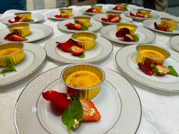 Disfruta de la alta cocina francesa en casa. Disfruta de una cena de 3 platos con una presentación elegante y un servicio atento.