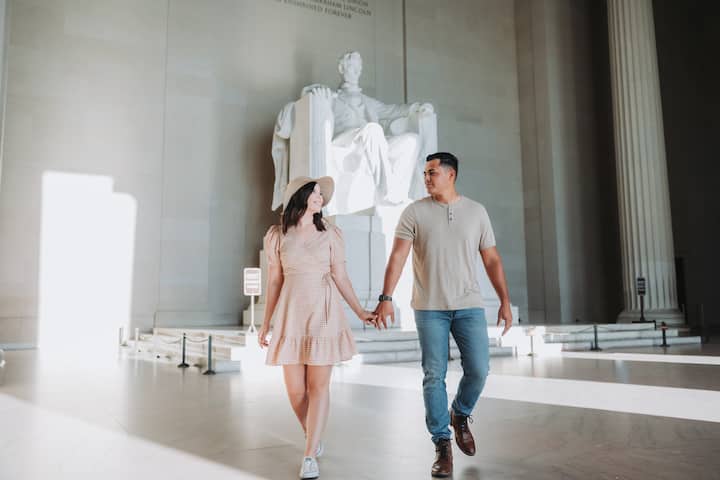 Disfruta de una sesión de fotos en lugares emblemáticos de Washington, incluido el Monumento a Lincoln.