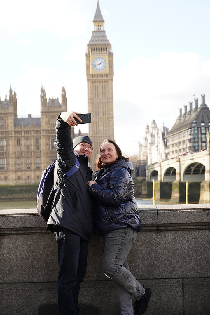 Os fotografiaré a ti y a tu pareja en lugares emblemáticos de Londres, como el Big Ben, el London Eye, el Támesis o una cabina telefónica roja. Recibirás más de 30 fotos.