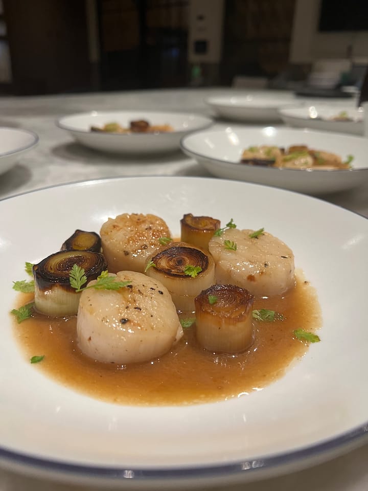 Para una cena inolvidable, este servicio incluye una comida completa preparada y servida en la casa del cliente. Los huéspedes quedarán impresionados por la frescura, el sabor y el color de cada plato, que se acentúa con una hermosa presentación.