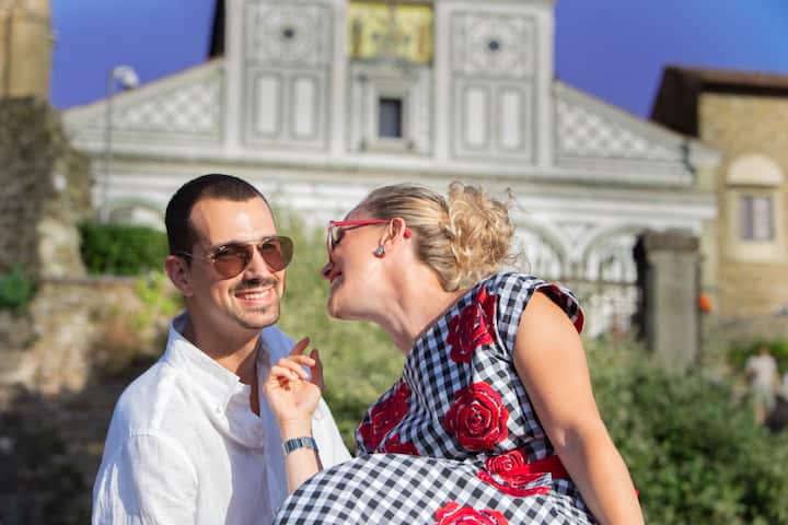 Haz fotos románticas en las zonas más bonitas de Florencia. Incluye el tiempo de desplazamiento entre las ubicaciones.