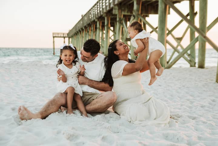 Captura momentos llenos de luz a la orilla del mar. Esta sesión de fotos es ideal para familias, parejas y ocasiones especiales.