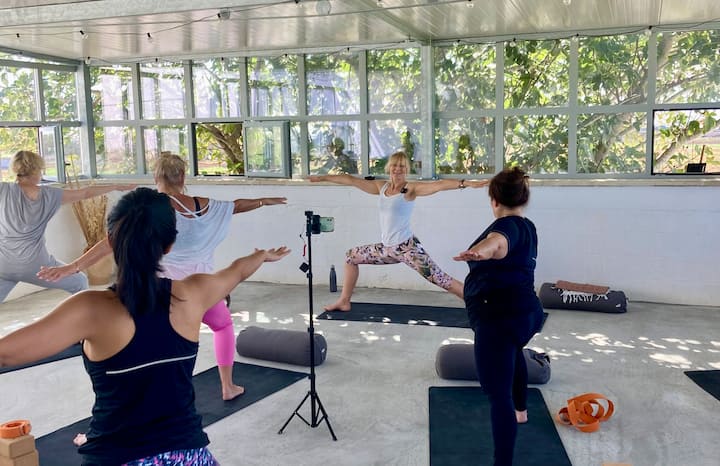 Una clase de yoga para ti y tus amigos con prácticas dinámicas o reparadoras, que incorporan ejercicios de respiración y meditación si lo deseas. Un viaje apasionado y empático hacia una mayor autoconciencia, equilibrio y paz interior.