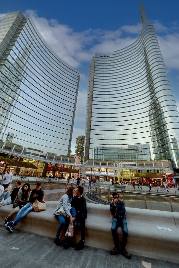 Fotografías de grupo en la Piazza Duomo y la Galería Vittorio Emanuele, seguidas de tomas en la Piazza Gae Aulenti, Navigli o City Life. Oferta para un mínimo de 5 personas.