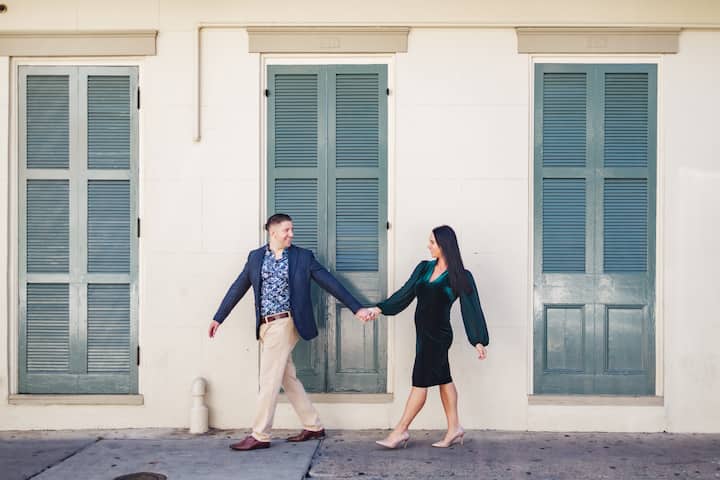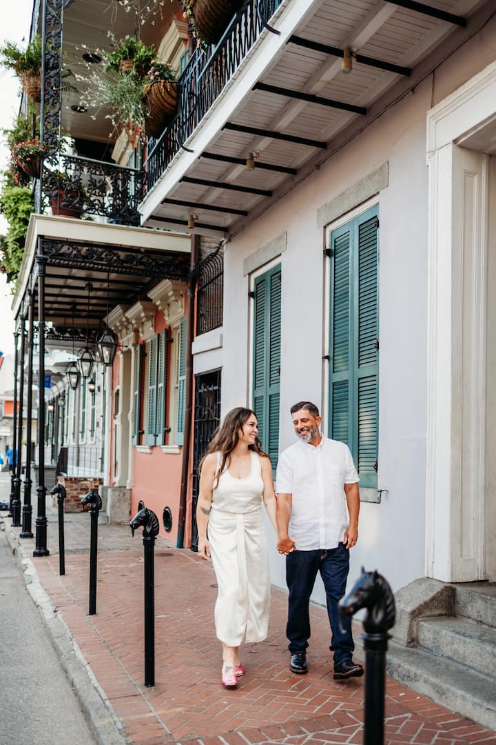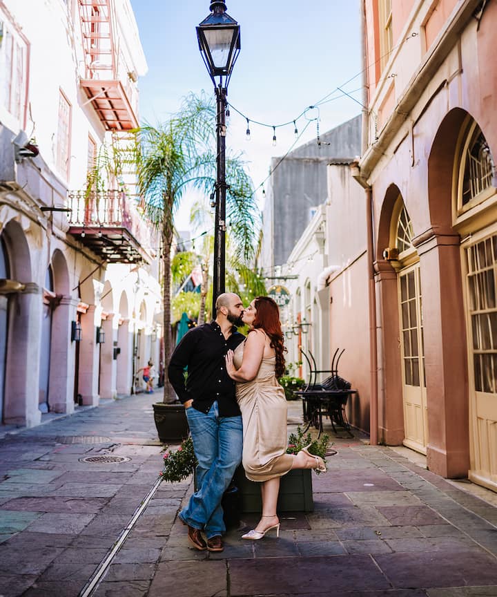 Pasea por el Barrio Francés en esta sesión de fotos que captura looks naturales con fondos emblemáticos. Ideal para parejas, grupos y retratos individuales.