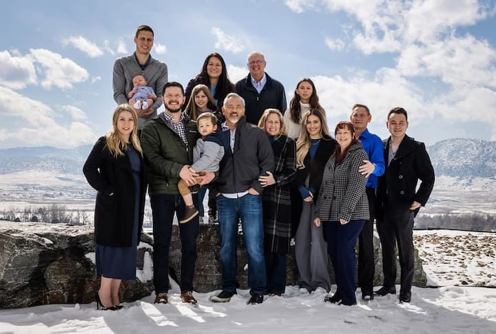Esta sesión es para familias numerosas de hasta 10 personas en el parque histórico Clear Creek, en Golden. Incluye 20 imágenes digitales editadas y hasta 1,5 horas de fotos ilimitadas. Opciones para comprar más.