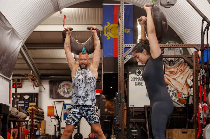 Entrenamiento divertido y variado con equipos de Strongman, sacos búlgaros, molinos persas y yoga.