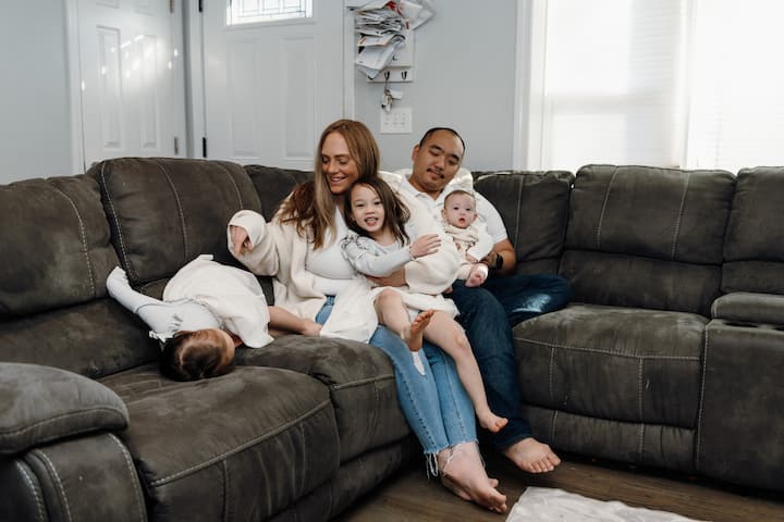 Esta sesión destaca la conexión dentro de una familia, capturando momentos alegres y sinceros e hitos significativos en un entorno relajado y natural.