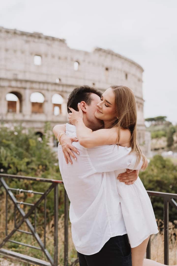Captura fotografías cinematográficas y narrativas para parejas en Roma. Llevate a casa 30 fotos en un lugar emblemático como el Coliseo, la Fontana de Trevi, la Plaza de España y el Panteón.