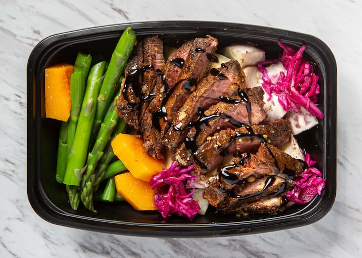 Un almuerzo o cena listo para comer con la proteína, las verduras orgánicas de temporada y los acompañamientos que vos quieras. Todo es sin gluten, sin aceite de semillas y podemos adaptarnos a cualquier restricción dietética.