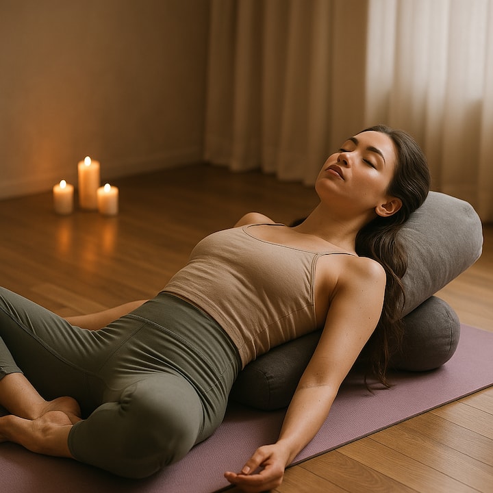 Esta práctica de yoga relajante y reparadora incluye estiramientos profundos y meditación para relajar la mente y el cuerpo.