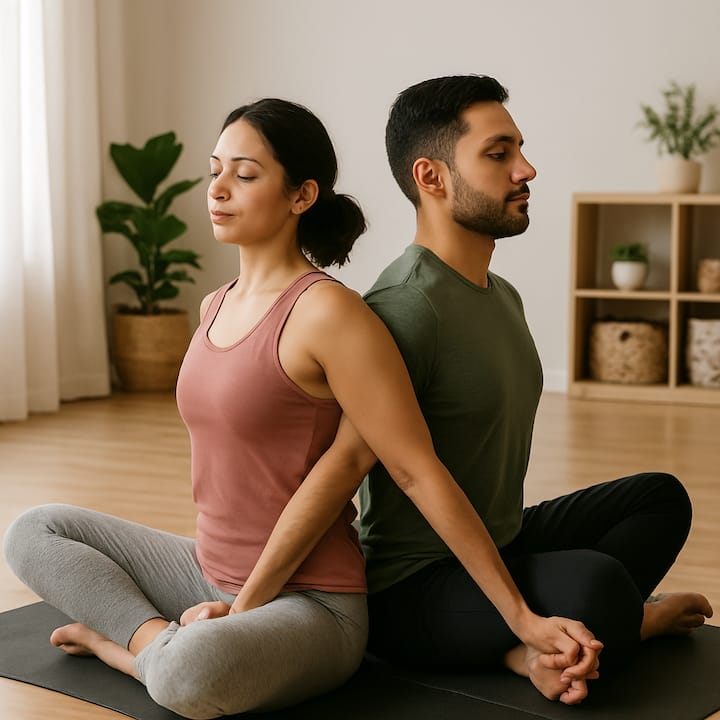 Esta práctica de yoga rejuvenecedora para parejas incluye posturas y técnicas de relajación diseñadas para fomentar el vínculo y aliviar el estrés.
