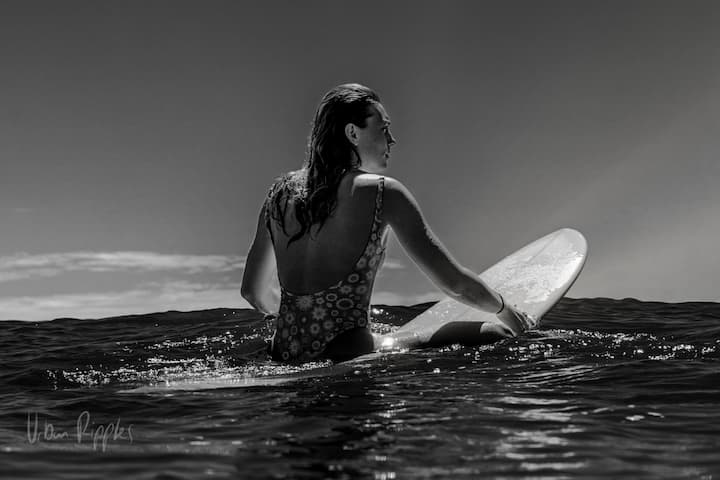 Esta es una sesión de surf al amanecer. Captura momentos dentro del agua, remando, surcando las olas o flotando en la calma entre las series.