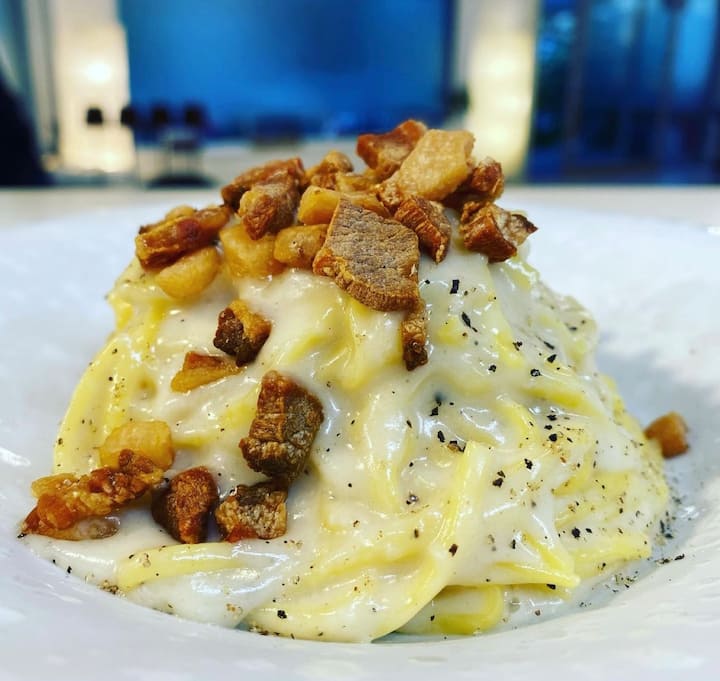 Este menú muestra giros creativos sobre los platos más emblemáticos de la cocina romana. El chef va a preparar un menú a medida para cada ocasión.