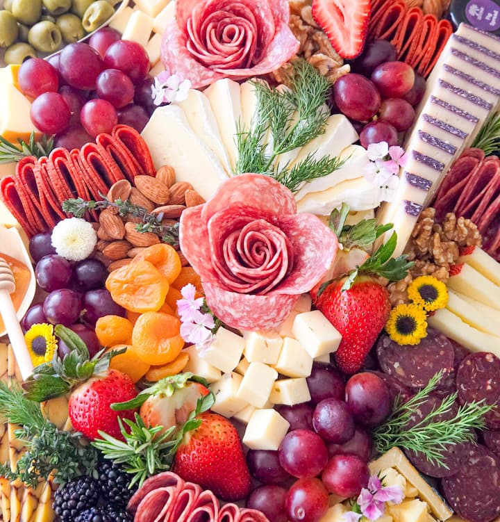 Embutidos, queso, frutas, galletitas saladas y acompañamientos. Para un máximo de 15 personas.