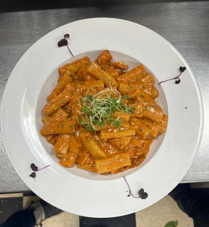 Incluye almejas a la oregonata, rigatoni con vodka y tiramisú para una rica comida italoamericana.